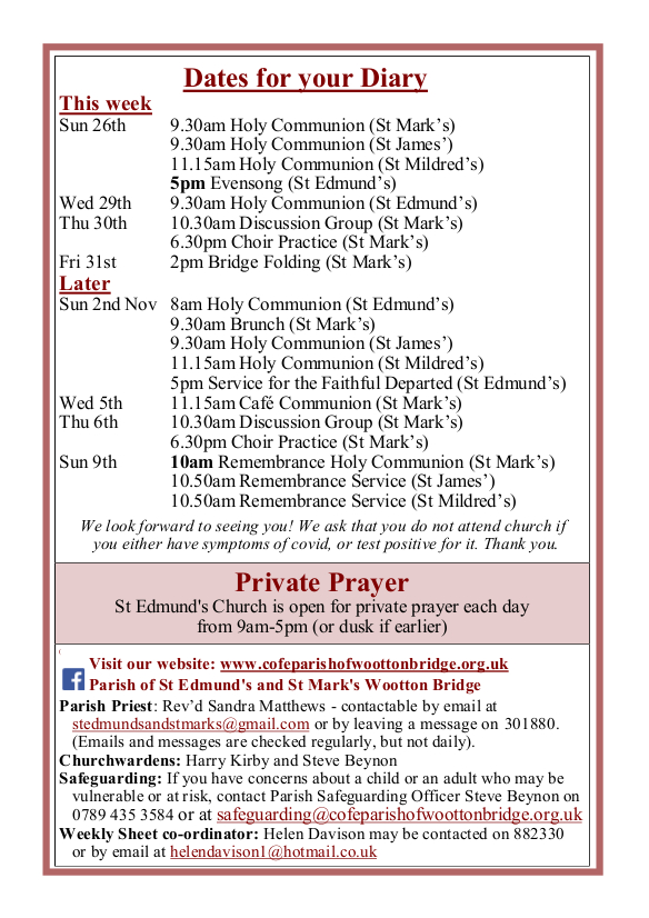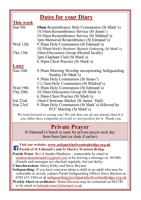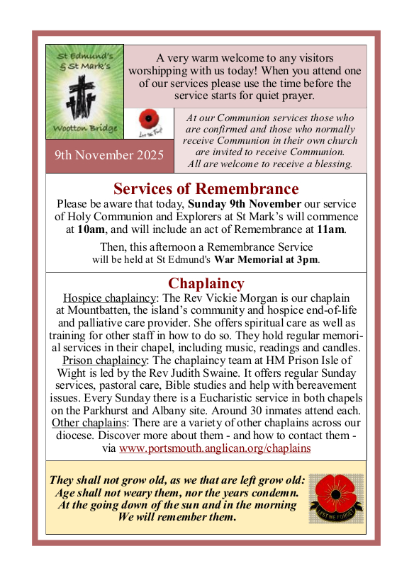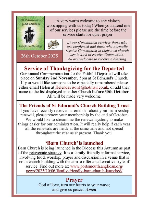 Welcome to our church family at St. Edmund's and St Mark's, Wootton Bridge