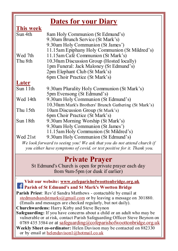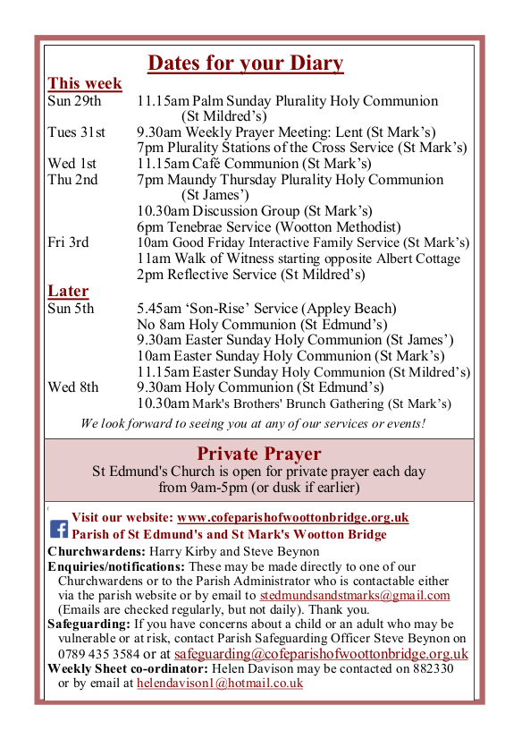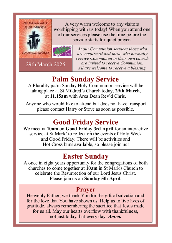 Welcome to our church family at St. Edmund's and St Mark's, Wootton Bridge